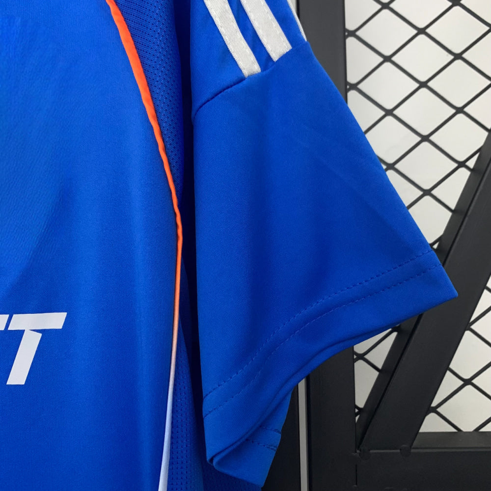 Edición local 25-26 diseñada para quienes viven el fútbol con intensidad: combinación de colores azul intenso y detalles contrastados que resaltan el emblema y el logotipo con estilo clásico y elegante.